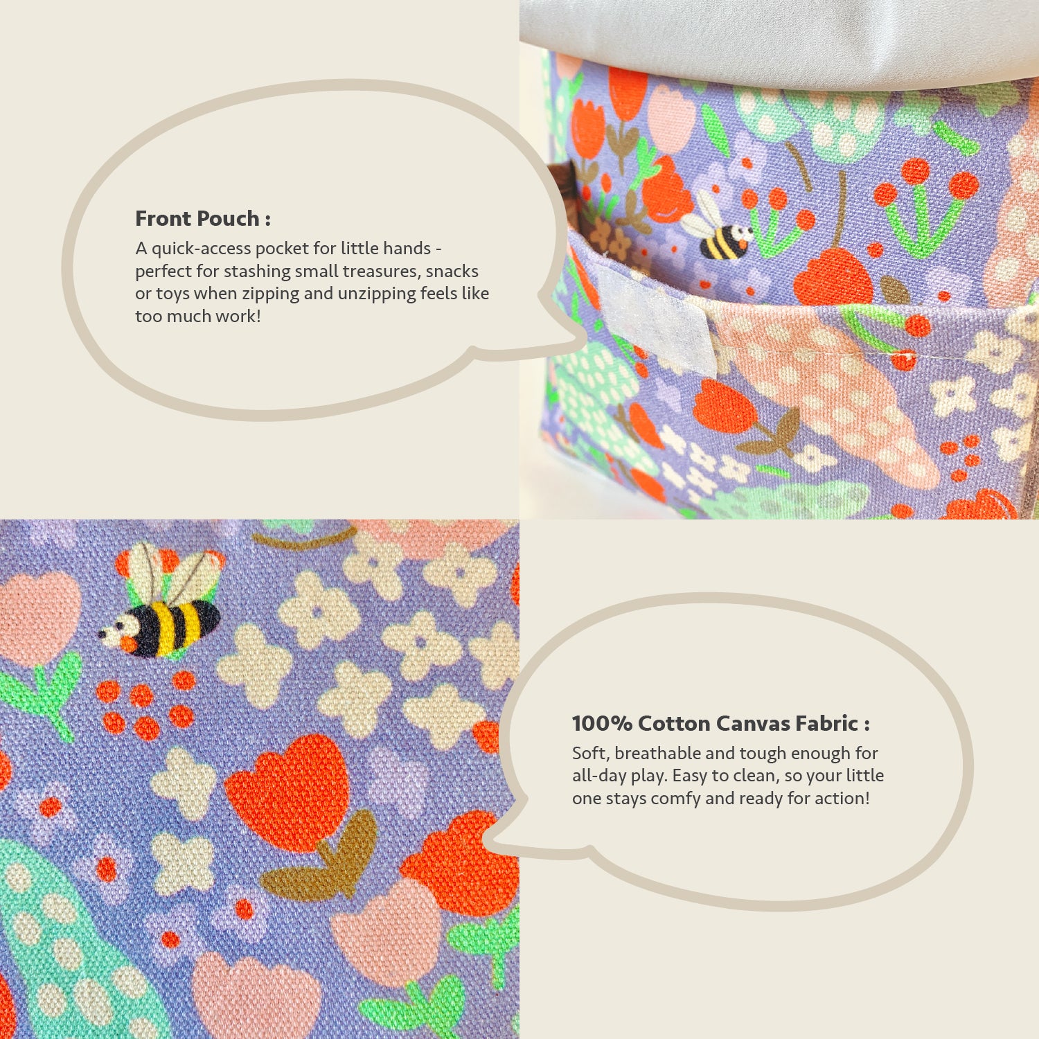 Breathable cotton canvas – Durable, washable, and kid-friendly