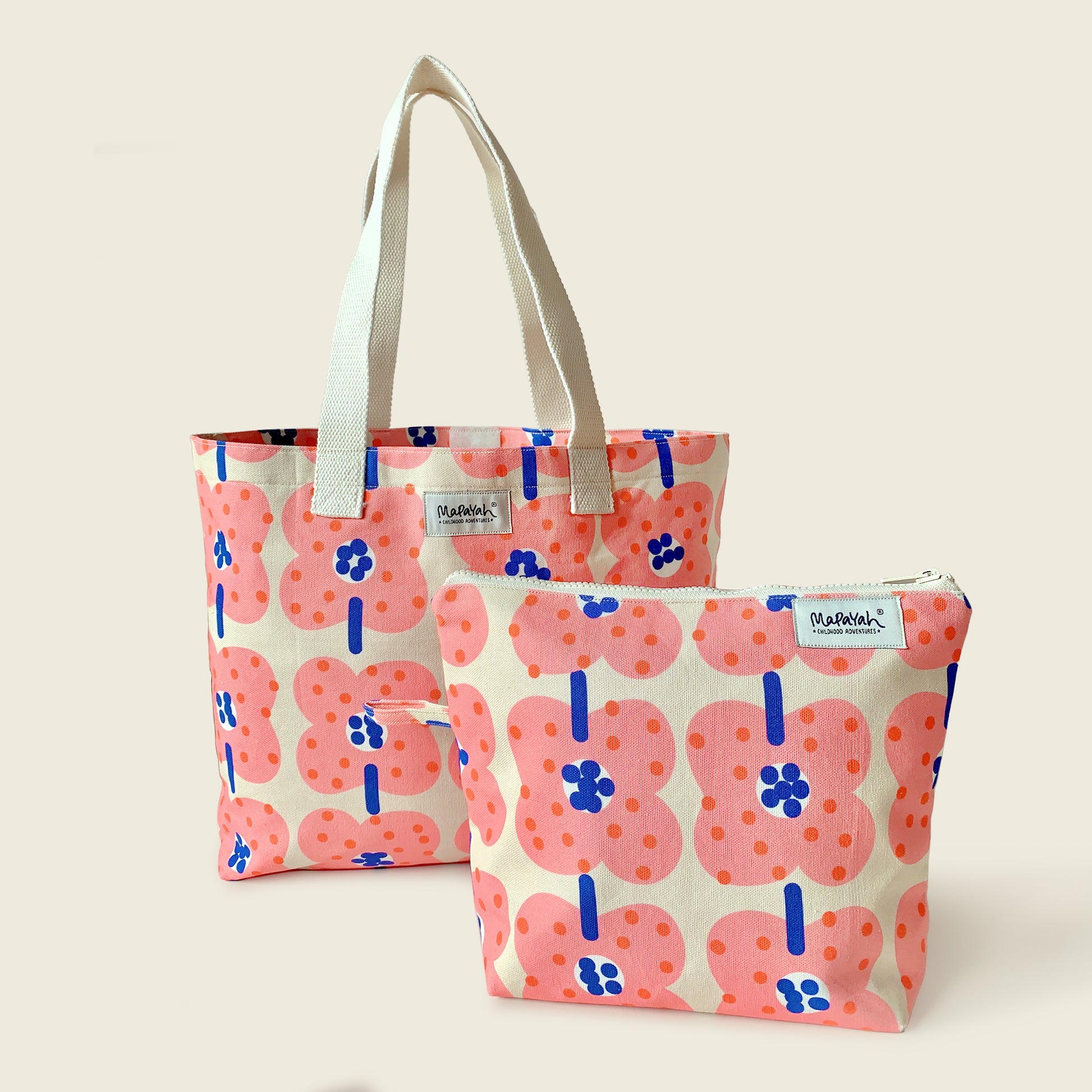 This set contains 1 Tote Bag & 1 Toilet Bag