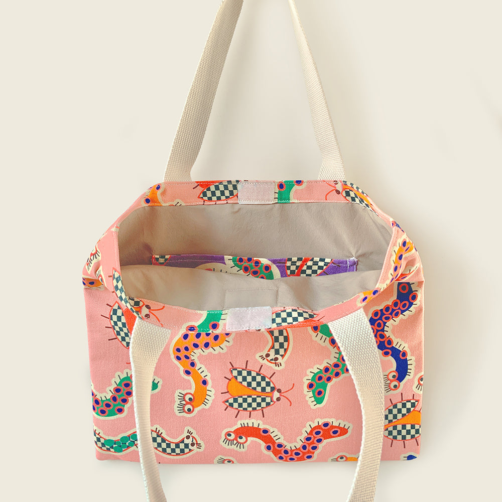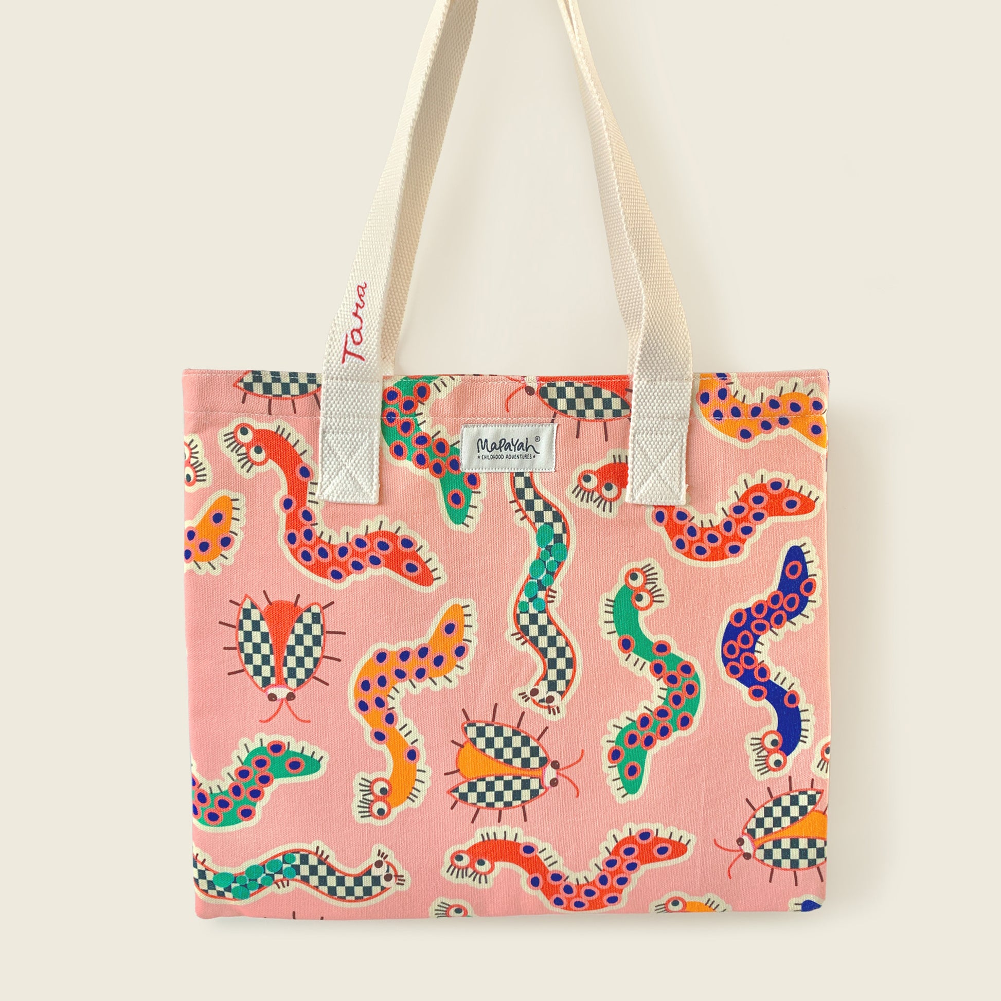 Inside, a pouch holds and a waterproof lining means wet swimwear or messy art supplies aren’t a problem. Topped off with Mapayah’s joyful in-house prints, this tote brings colour and personality to every outing.