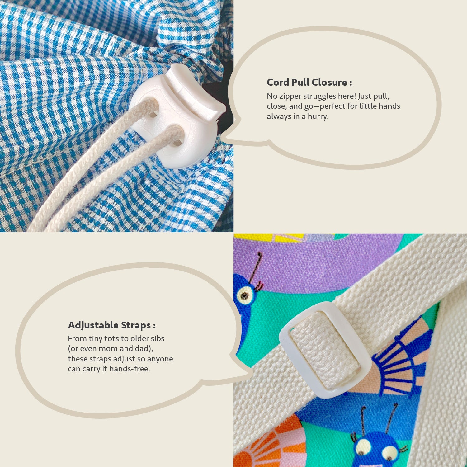 Adjustable shoulder strap – comfy, hands-free for kids and adults
