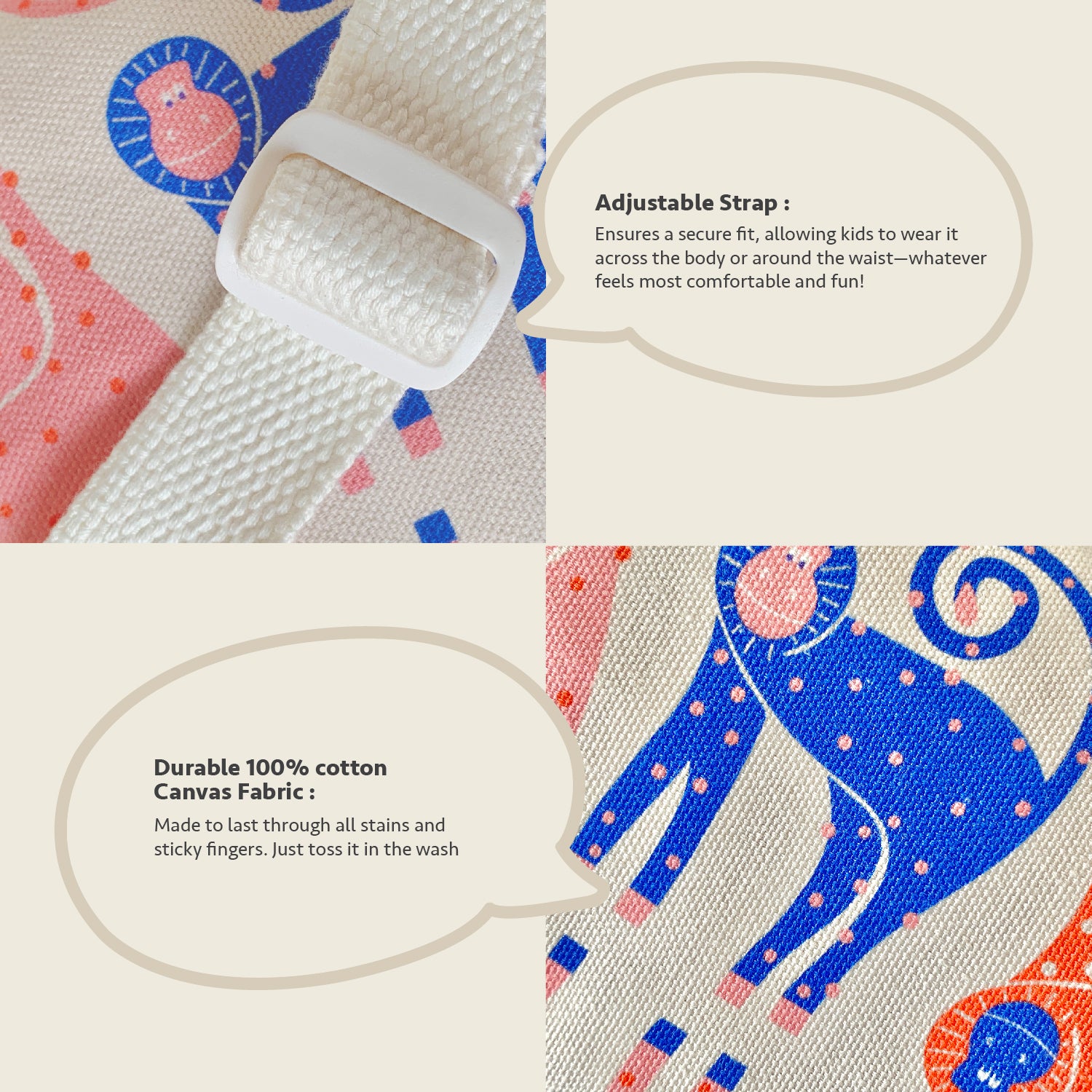 The adjustable strap ensures a just-right fit as your little one grows, while the waterproof lining keeps messes in check. Finished in our signature Mapayah prints, this sweet sling brings a pop of joy to every outfit and outing.