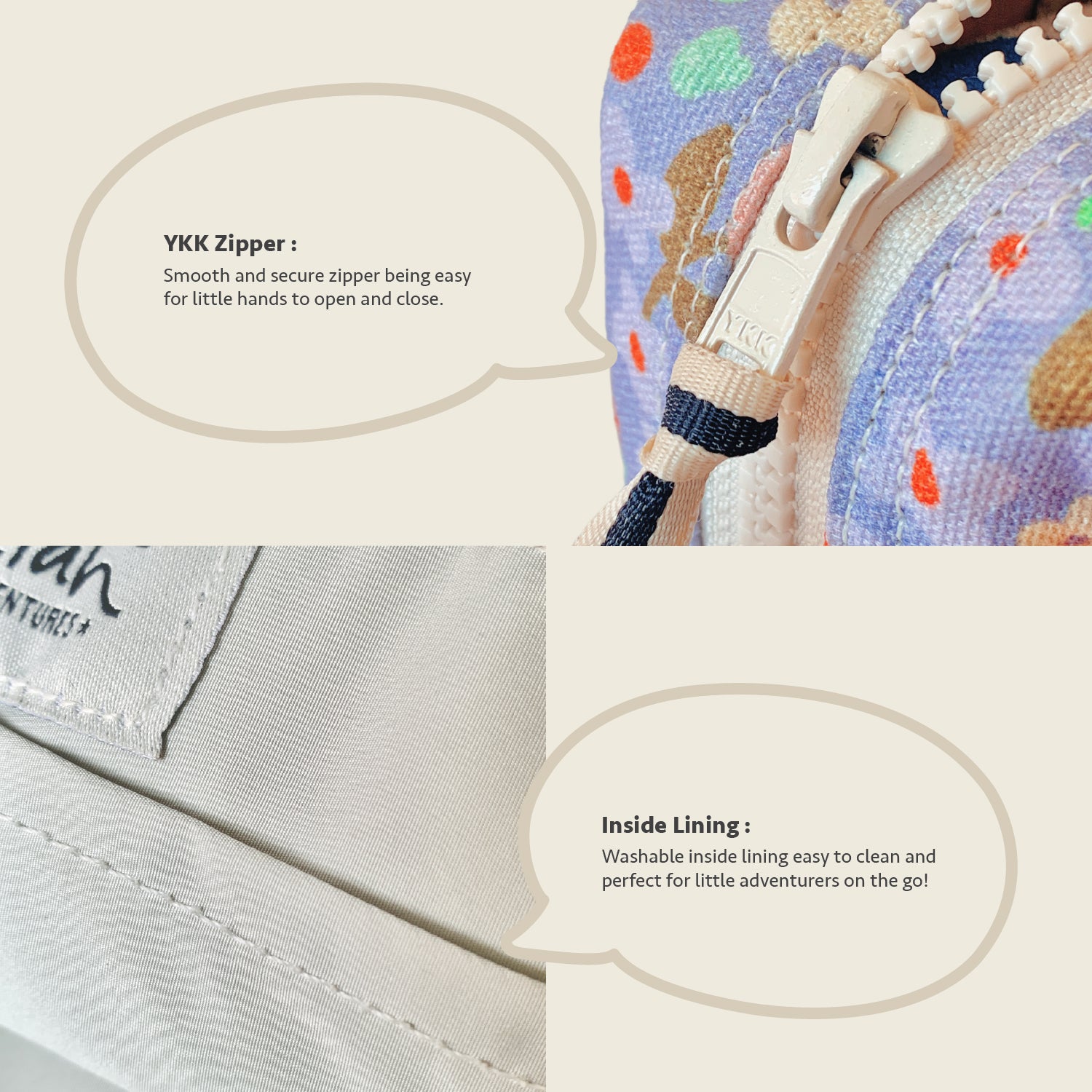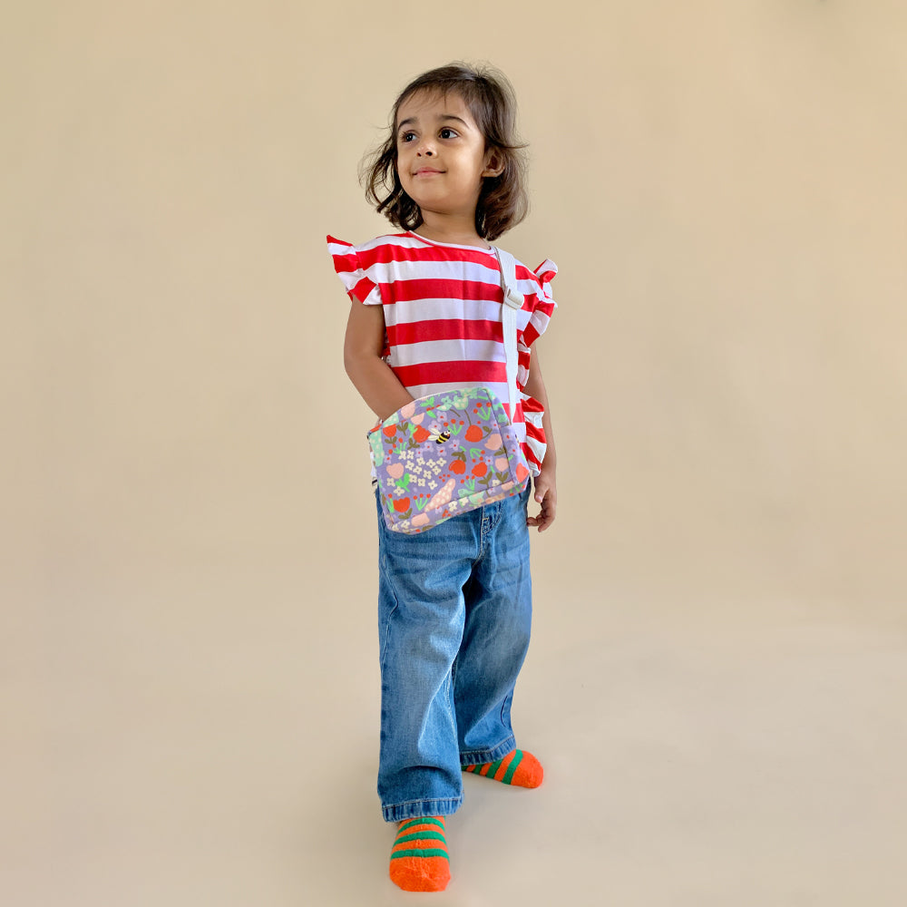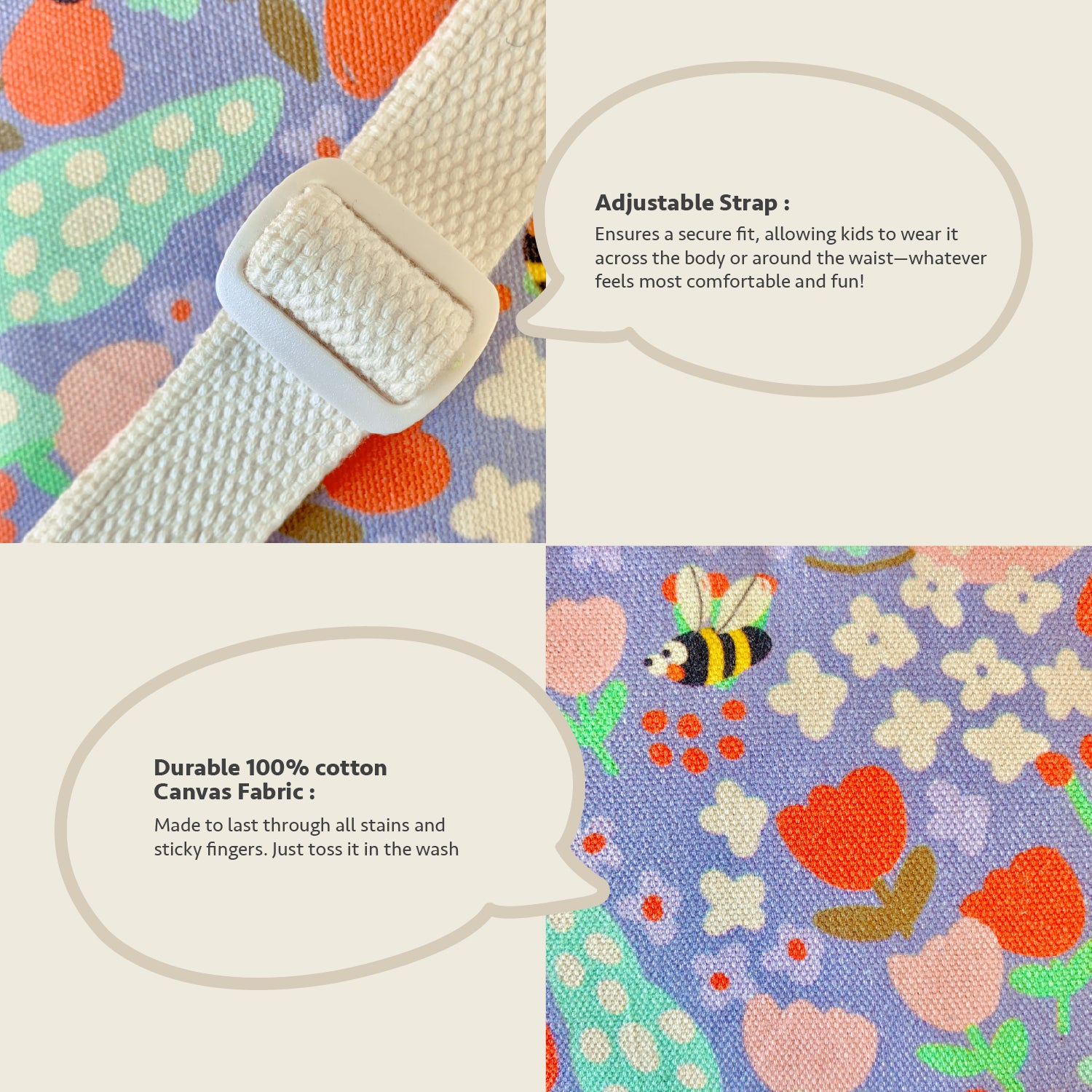 The adjustable strap ensures a just-right fit as your little one grows, while the waterproof lining keeps messes in check. Finished in our signature Mapayah prints, this sweet sling brings a pop of joy to every outfit and outing.